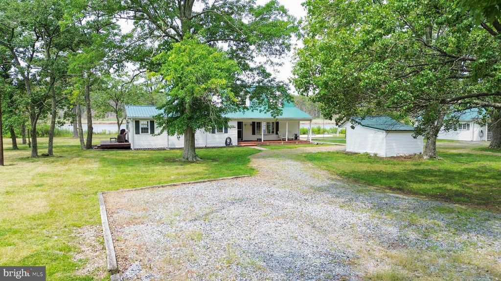 Escape the pace of city life and discover your own private waterfront retreat on St. John's Creek"”where nature, serenity, and charm come together on 3.5 beautifully secluded acres. Just a scenic drive from Baltimore, Washington, DC, and Northern Virginia, this rare offering invites you to unwind in a true Eastern Shore paradise surrounded by bald eagles, herons, geese, ducks, sika deer, and abundant wildlife. The charming cottage is filled with warmth and character, featuring a welcoming living room with fireplace, mantle, and pellet stove, a cozy kitchen and dining area, and a versatile first-floor bedroom and laundry room with daybed. A full bath completes the main level. Upstairs, a spacious bedroom with half bath and wood stove creates a peaceful, storybook-like retreat. Enjoy sweeping water views from the brick-floored screened porch overlooking the creek and private pier"”perfect for morning coffee or evening cocktails. Outside, gather around the fire pit under star-filled skies and take in the tranquil sounds of nature. The property also includes a thoughtfully designed carriage house, ideal for guests or rental income. With a large bunk room featuring six bunk beds, an expansive second-floor bedroom accommodating two queen beds, and a main level with kitchen, dining area, living room, and full bath, there is plenty of space for entertaining. An attached two-car barn-style garage adds both charm and functionality. Offered fully furnished and turnkey, this property has been successfully used as a vacation rental while also enjoyed by its owners"”providing flexibility for both personal use and income generation. Kayak and paddleboard storage make it easy to enjoy the waterfront lifestyle, and nearby Boats & Hose Restaurant is a local favorite known for its outstanding cuisine. Whether you're seeking a weekend escape, a full-time haven, or an investment opportunity, this exceptional property delivers. Enjoy it, share it, and let it help pay for itself"”your waterfront dream starts here.