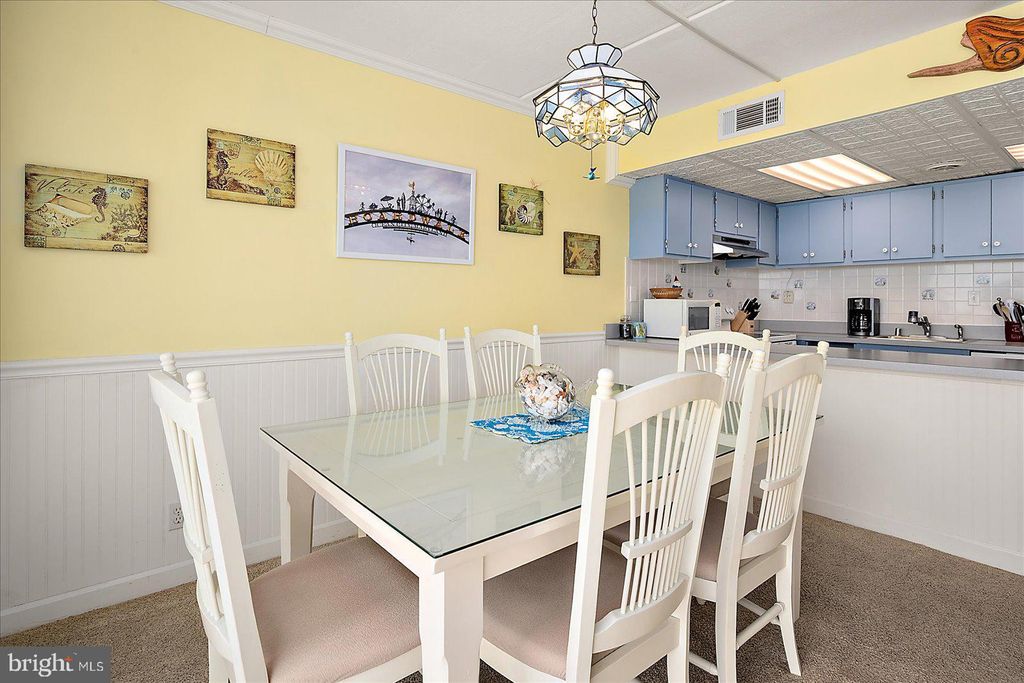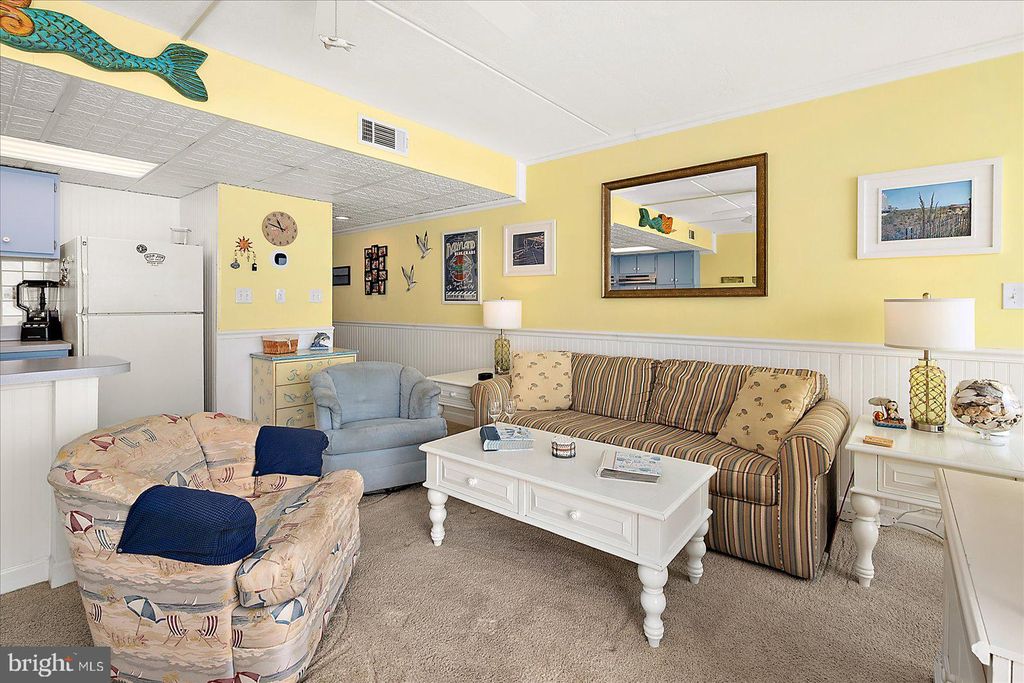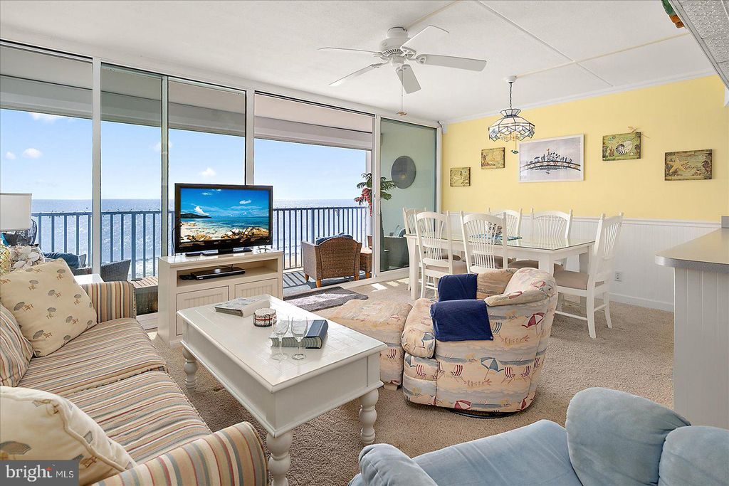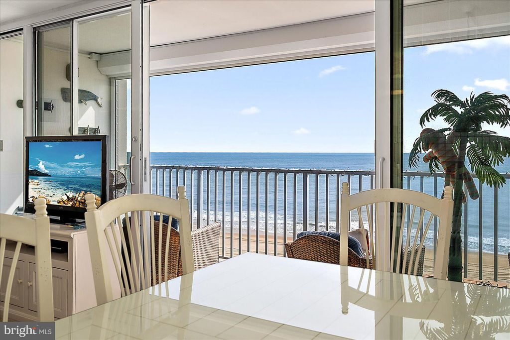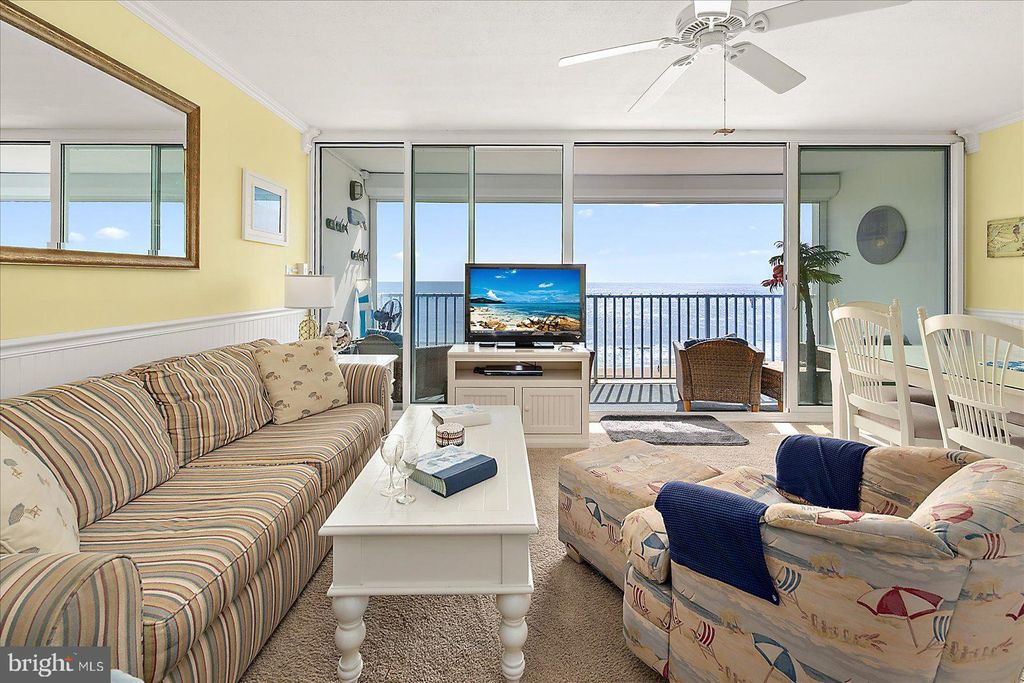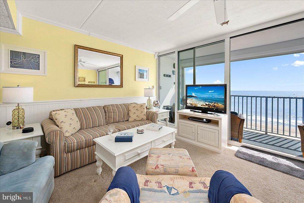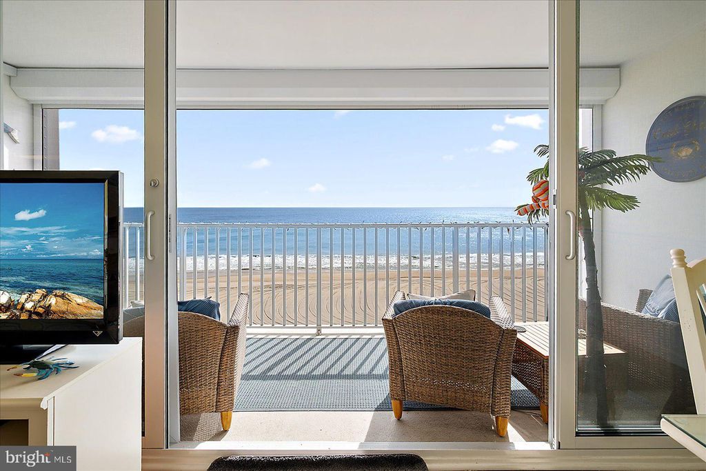 Exceptional Direct Oceanfront Condo with Floor-to-Ceiling Glass and Panoramic Atlantic Views! Experience true oceanfront living in this beautifully maintained and thoughtfully updated condo, where sweeping Atlantic views and abundant natural light create a serene coastal retreat. Floor-to-ceiling, wall-to-wall hurricane rated sliding glass doors, installed in April 2021, frame the stunning oceanfront scenery and open to an expansive 20-foot covered balcony, perfect for enjoying morning coffee, ocean breezes, and the relaxing rhythm of the waves. The open concept layout seamlessly connects the living room, dining area, and kitchen, allowing for unobstructed views from every main living space. Natural light fills the interior, highlighting elegant finishes such as crown molding and wainscoting while creating a bright and airy atmosphere ideal for both everyday living and entertaining. This spacious one bedroom, one bath residence offers a flexible and highly functional layout rarely found in comparable units. The oversized bedroom comfortably accommodates two queen beds along with additional seating, while the living area features a queen sleeper sofa, providing ample space for guests and enhancing the property's versatility. The renovated bathroom is designed for both style and convenience, featuring tile flooring and a tiled tub/shower combination with dual access from the bedroom and hallway, offering added privacy and ease of use. The kitchen is fully equipped and thoughtfully positioned within the open living space, making meal preparation both convenient and enjoyable while remaining connected to the oceanfront setting. Whether hosting guests or enjoying a quiet evening at home, the layout supports effortless coastal living. The property has been well maintained and updated over time, including hurricane-rated sliding glass doors installed in 2021, electronic hurricane shutters added in 2019 with full opening capability updated in 2021, a newer HVAC system installed in 2023, water heater replaced in 2020, and a new electrical panel installed in 2024. Sea Gate offers desirable amenities including direct beach access, an oceanfront swimming pool, secure lobby, owner storage, and a bike room. Ideally located just moments from the Ocean City boardwalk, as well as restaurants, shopping, entertainment, and local attractions, this property combines convenience with a peaceful oceanfront setting. Whether you are seeking a primary residence, vacation getaway, or investment opportunity, this exceptional condo offers the perfect blend of comfort, location, and breathtaking views.