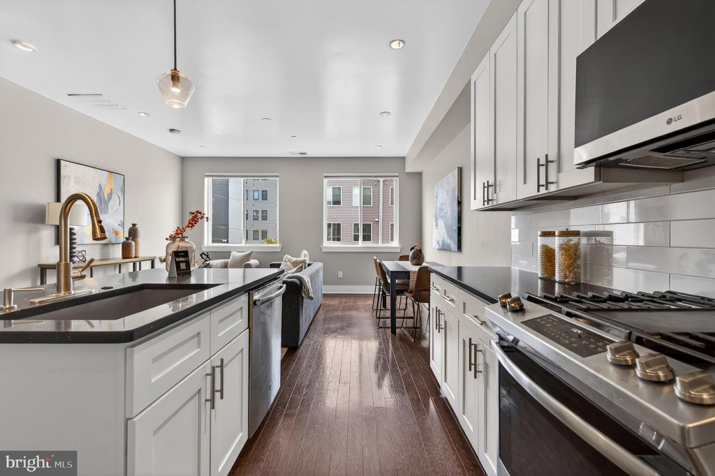 Welcome to 1918 E Letterly, Unit 2, a stunning two-story condo located in the heart of East Kensington. This rapidly evolving Philadelphia community offers excellent access to Fishtown and the vibrant Frankford Ave corridor. A true city jem, this unit includes a deeded, off-street parking stall in a private lot. Inside, discover a spacious layout featuring three bedrooms, each accompanied by its own full bathroom. Hardwood floors guide you through the main floor, which hosts the kitchen, primary living space, a dedicated dining nook, and the first spacious bedroom. Your culinary space is equipped with all stainless steel appliances, a timeless white subway backsplash, and a quartz kitchen island with excellent storage and bar seating. Ascend to the second floor to find the other two bedrooms and full ensuite baths, with one including a walk-in tile shower. Laundry is also on this floor for added convenience. Imagine spending your summer on your own private, sunny roof deck, complete with stunning panoramic city views! This condo at 1918 E Letterly #2 is located in the vibrant East Kensington neighborhood, putting you just blocks away from SEPTA access, diverse dining, cozy cafes, and so much more. Make this amazing spot your new home!