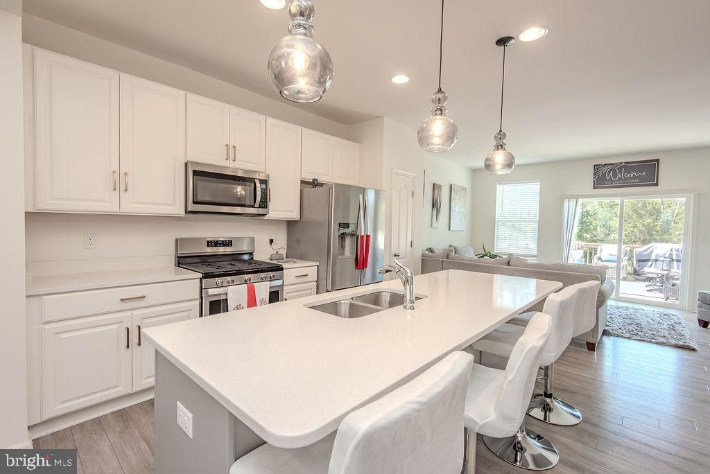 Less than 5 years young, this gorgeous end townhome, on the DC side of Winchester, backing to woods is the perfect blend of elegant luxury and modern convenience. Rarely available, this end TH with bumpout extensions on all 3 levels is one of the largest floorplans in Freedom Manor at a little over 2,500 finished sq feet. Enter on the ground level with views straight through to the rear patio and yard, luscious & inviting, with just the sounds of nature and ample privacy. Bright and spacious lower level has an elegantly finished full bathroom, walk in shower with floor to ceiling tilework. Den and recreation rooms offer versatile spaces for entertaining, offices, exercise room or guest suite with sliding doors out to the private rear patio. Main level is open and flowing with gorgeous, wide plank LVP and an enormous trex deck that extends refined living to the outdoors. Winter views of the foothills and spring, summer and fall bring blooms and foliage. Huge island with quartz countertops is the central focus of the bright and open kitchen. Stainless steel appliances and custom pendant lighting bring understated elegance. Upstairs, the primary suite with two walk in closets overlooks the forest and the foothills with a beautiful primary bath with soaking tub and separate shower, double vanity and rich tile floor. Beautifully appointed, with elevated lighting and custom touches throughout, this nearly new home is turnkey and ready for it's new owners! Oversized 1-car garage, private driveway and plenty of guest parking in the community. Just 4.3 miles to Old Town Winchester and the pedestrian mall with charming rural farmers market, boutiques & shops, restaurants and centuries of history.